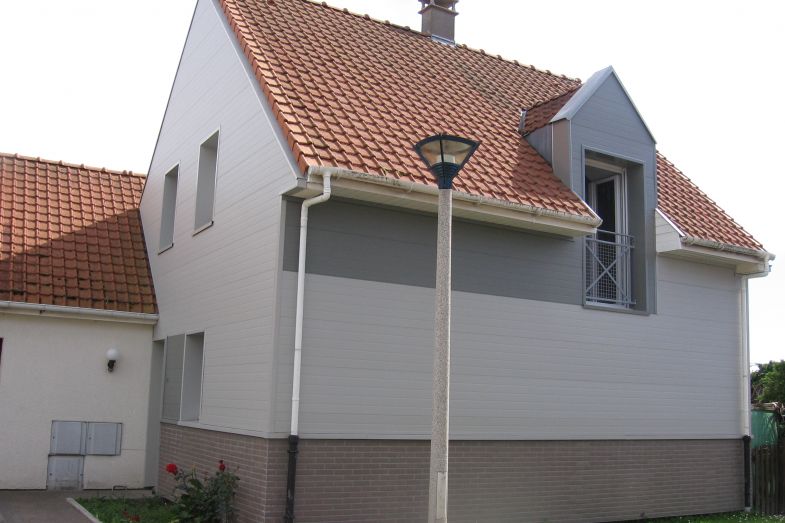Type de pose : REHABILITATION - 6300 m² de VETAGE Panneaux M32 – CLIN LISSE MAT en RAL 7044 – RAL 7023 et RAL 7015 en pose horizontale sur isolant complémentaire Polyuréthane de 60 et 80 mm