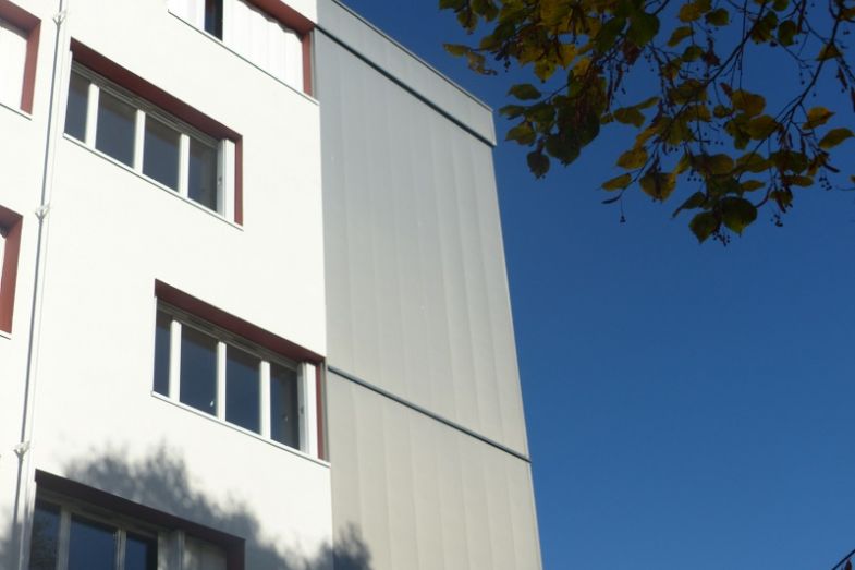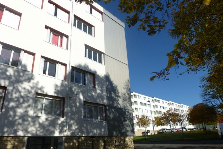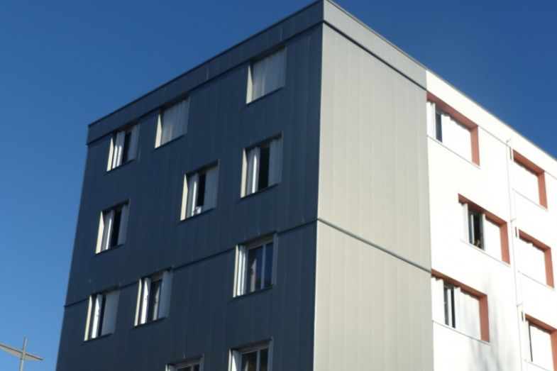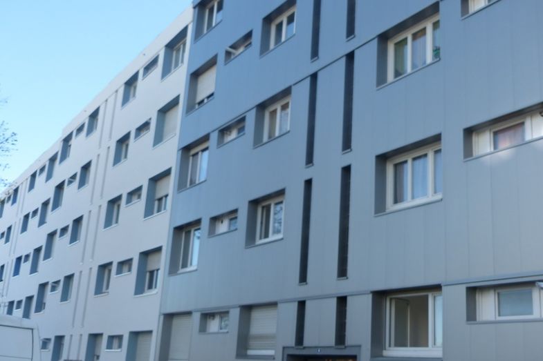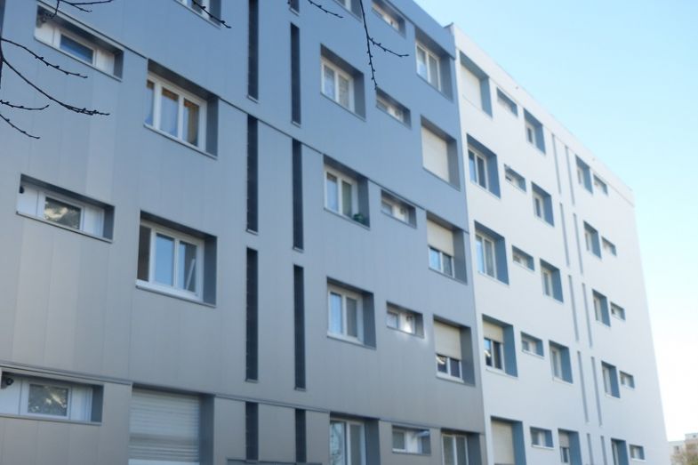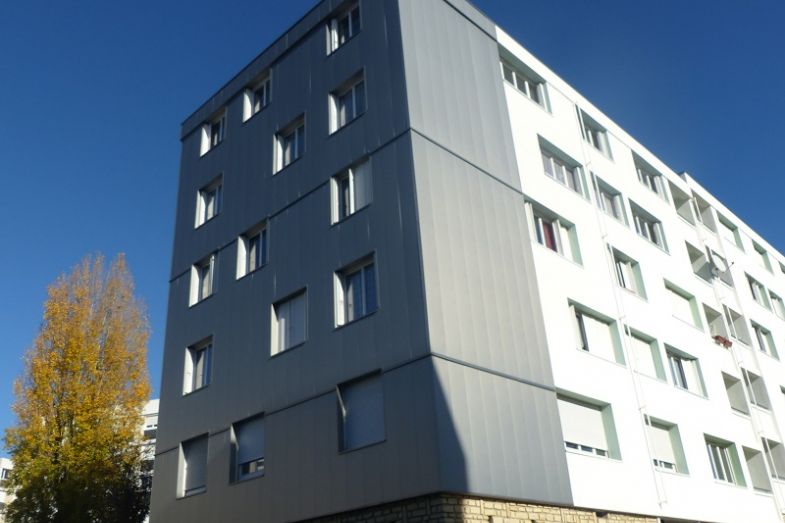 Il s'agit de la réhabilitation thermique de 464 logements collectifs en mixte produits enduit/ITE (STO) et de l'habillage des pignons et d'une partie des façades avec touche métallique et finition AluNatur quartz zinc pour une surface totale de 1600 m².