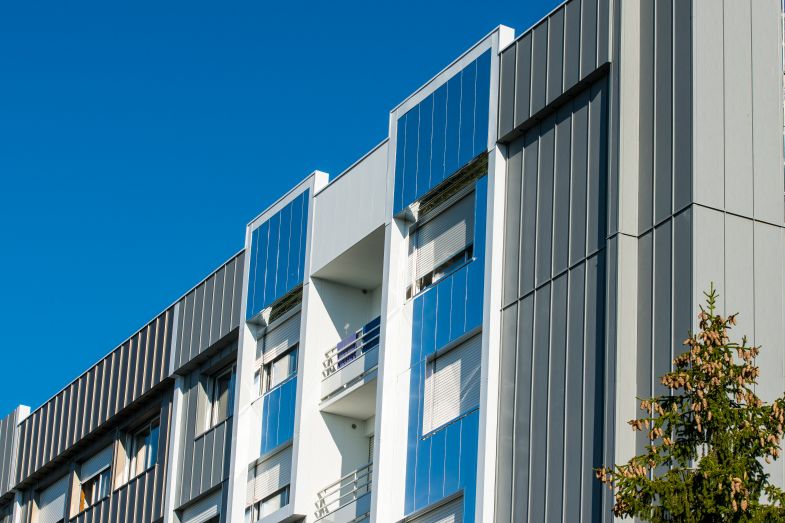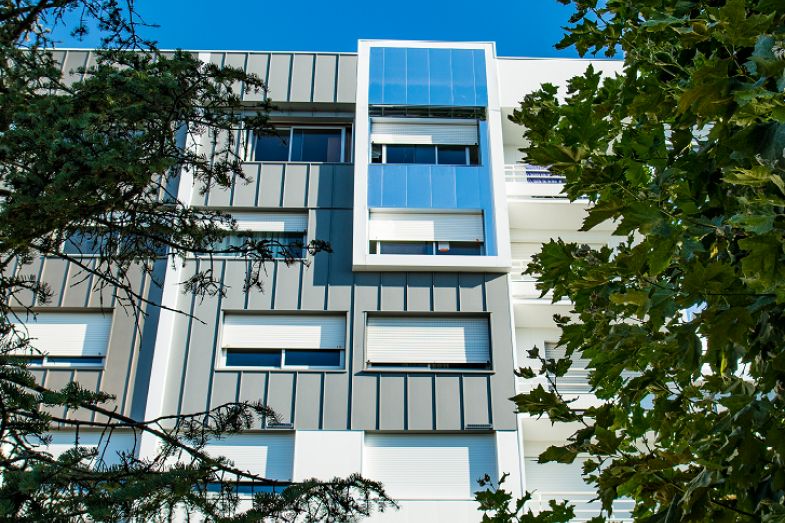 Concernant la partie basse de la copropriété, le choix s'est porté sur une nuance de blancs de la gamme pur mat qui éclaircit et donne un effet sophistiqué au bâtiment... Alors que pour les 3 étages supérieurs, le maître d'oeuvre a eu recours à l'effet joint debout permettant de (re)dynamiser la façade et de lui offrir un rendu moderne.