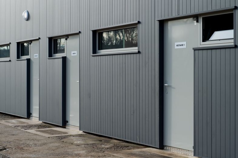 Isolation par l'extérieur et embellissement d'un gymnase, de vestiaires, d'un club house et de locaux techniques.