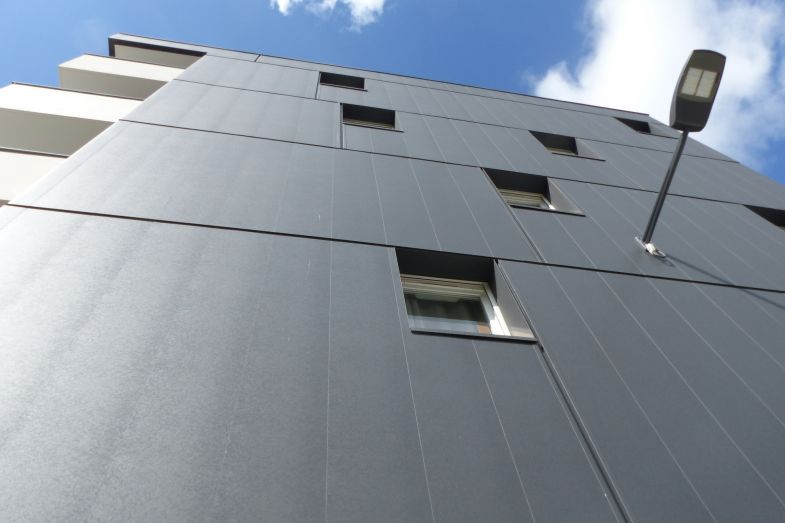 Ce projet offre un rendu novateur pour le produit MYRAL grâce à l’utilisation d’un profil spécifique «le Joint CREUX» , qui permet de tramer la façade à volonté et qui permet d’avoir un rendu architectural unique.