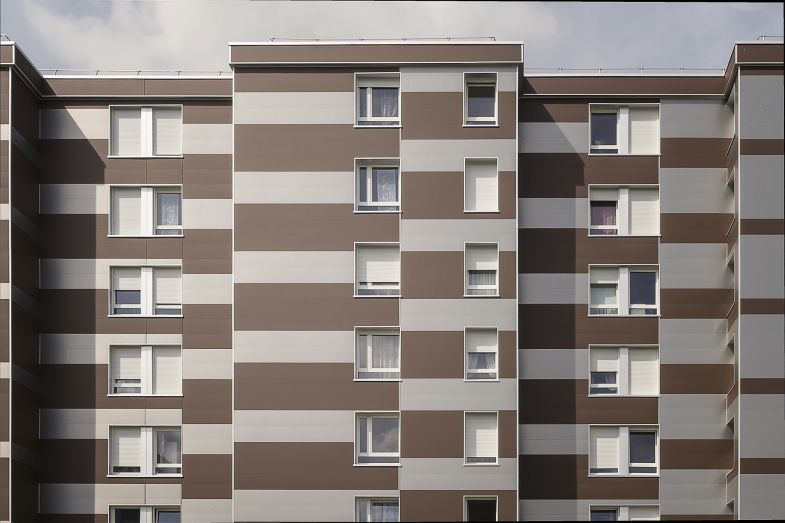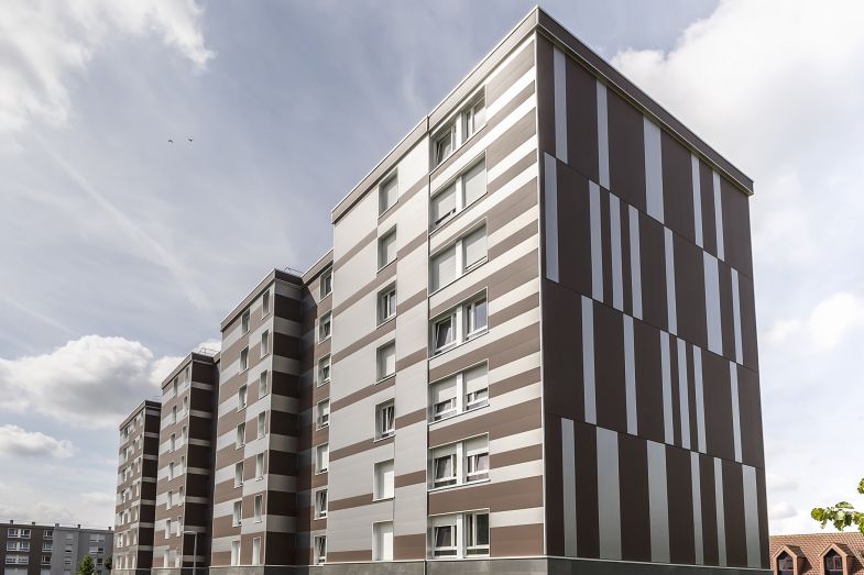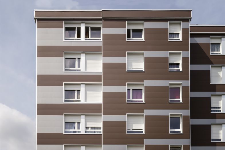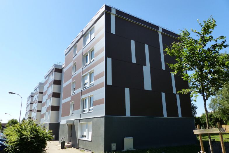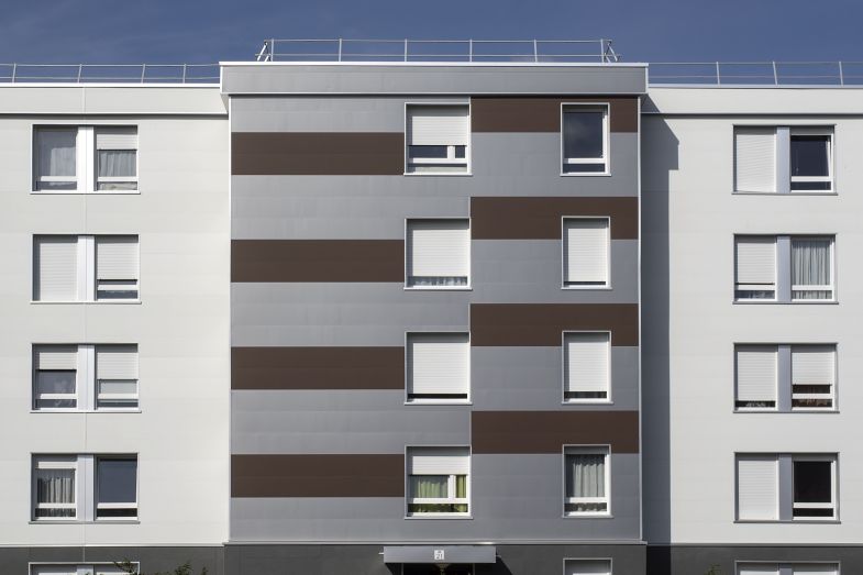 Réhabilitation de 2 immeubles, comprenant 104 logements sociaux, pour une surface totale de façades de 5 240 m2.