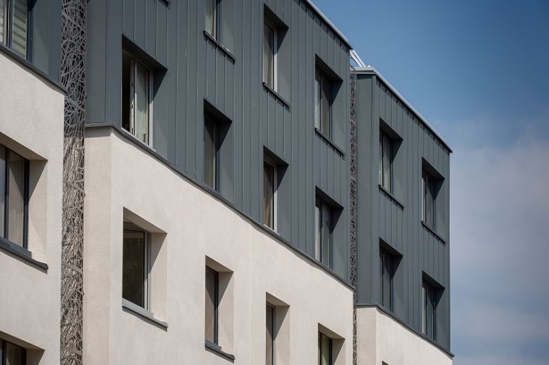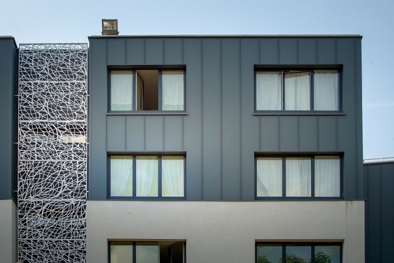 Texture(s) et coloris : Aspect lisse – coloris RAL 7012 MAT, RAL 7038 MAT et ZINC PATINA.