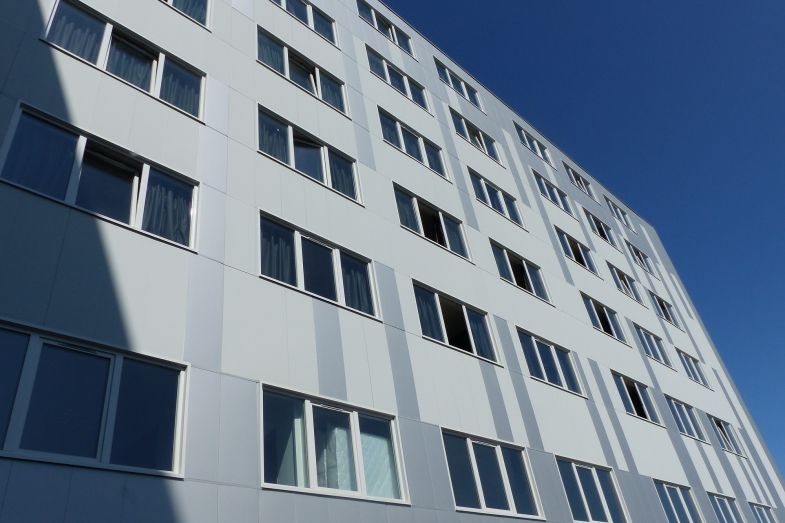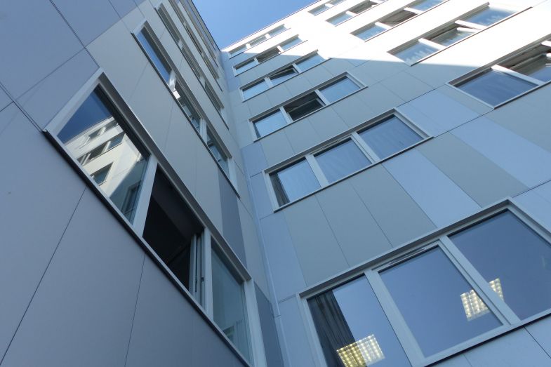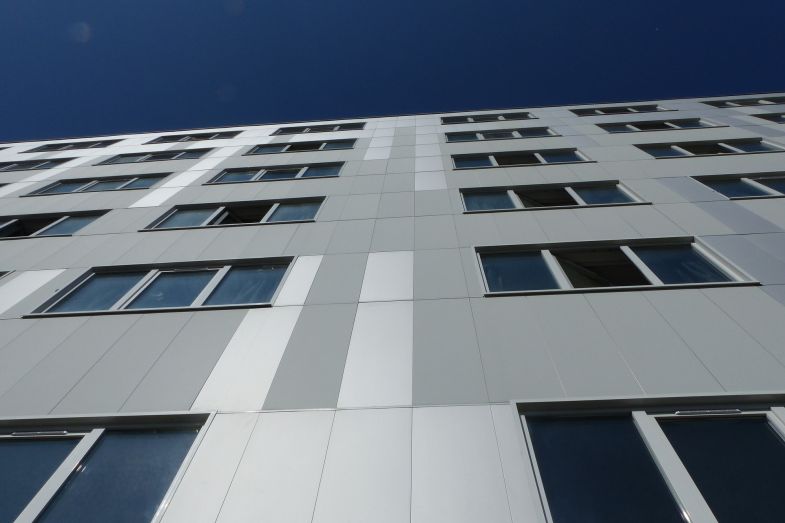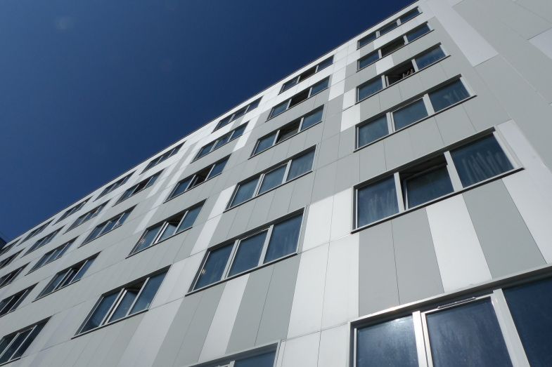 Isolation et habillage de logements étudiants neufs, pour une surface totale de façades de 2 000 m2.